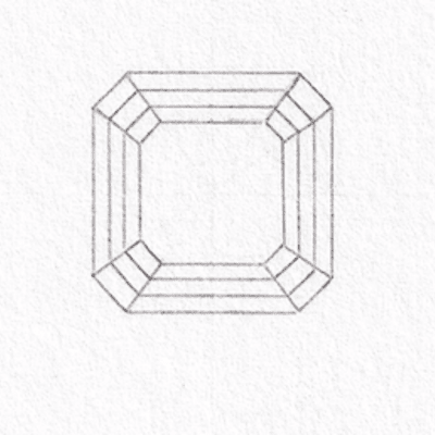 Asscher cut diamonds offer a unique art deco aesthetic with a more subdued sparkle compared to brilliant cuts, showcasing the clarity of the stone. The cropped corners and step cuts contribute to their distinct appearance and unique appeal. Step cut diamonds tend to display a softer glow and less vivid sparkle than a brilliant cut, but they demonstrate the amazing clarity of a stone much better.